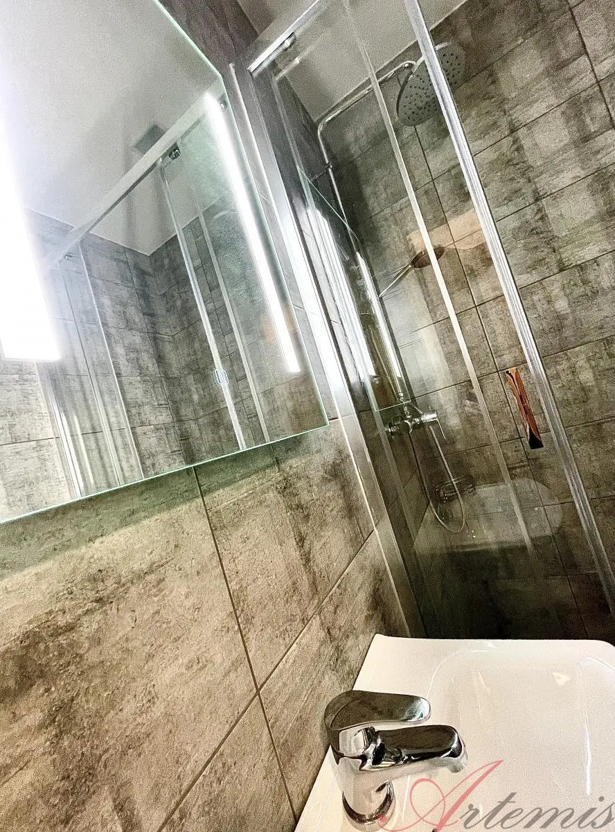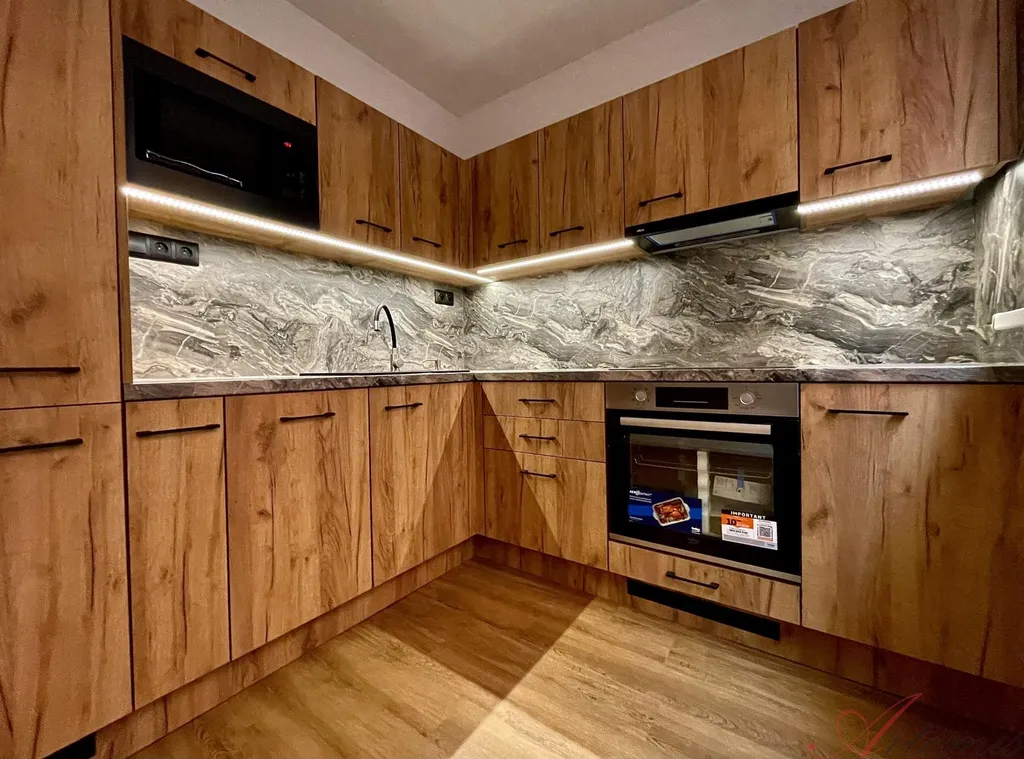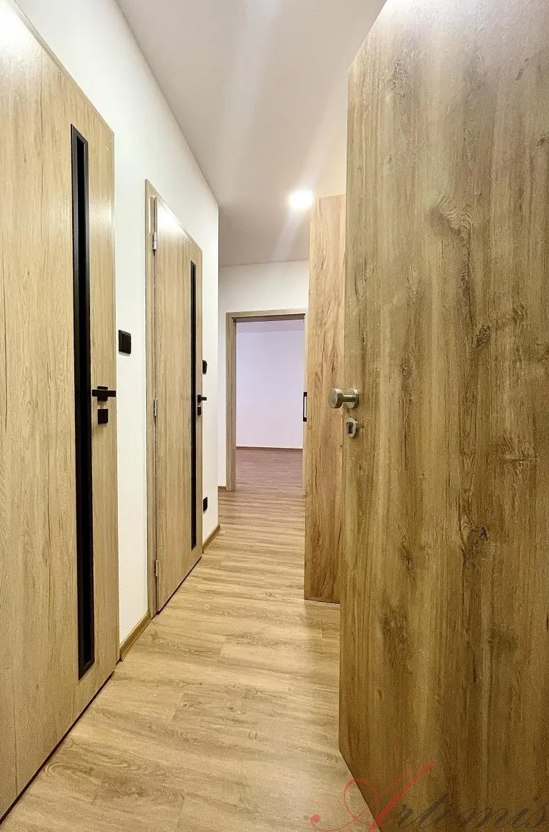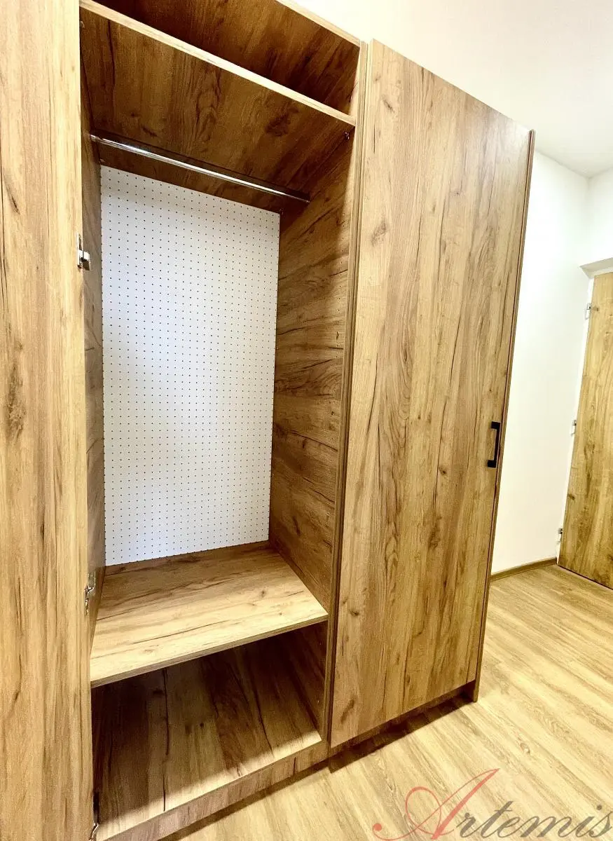 Nově zrekonstruovaný slunný byt je situován na jihovýchodní stranu a nachází se v sedmém podlaží revitalizovaného domu. Disponuje kuchyňskou linkou s indukční varnou deskou, elektrickou troubou, vestavnou lednicí, mrazákem, myčkou, mikrovlnnou troubou, neméně digestoří. (výrobce Beko) Podlahové krytiny tvoří vinylové plovoucí podlahy, v sociálním zařízení je dlažba. Koupelně dominuje prostorný sprchový kout, chodbě objemná šatní skříň.