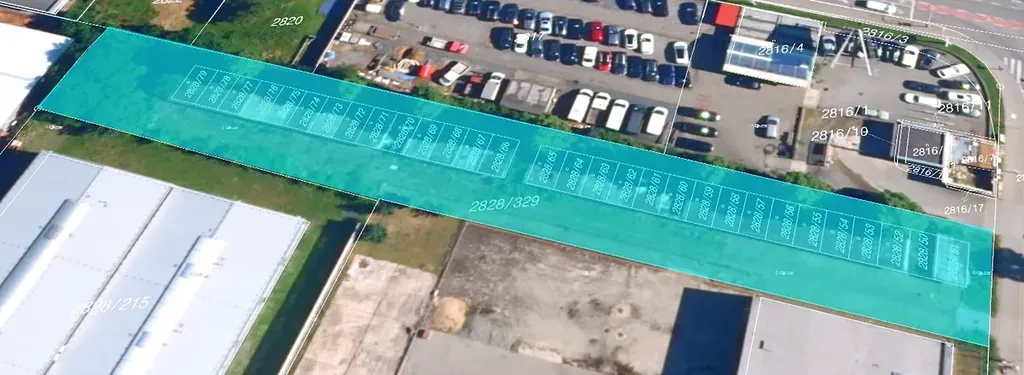 Díky rozměrům pozemku (přibližně 133 m na délku a 18 m na šířku) vzniká po případné demolici dobře využitelný prostor s efektivním uspořádáním. Dle stavebních možností může být také řešením nadstavba stávajících garáží o další podlaží.