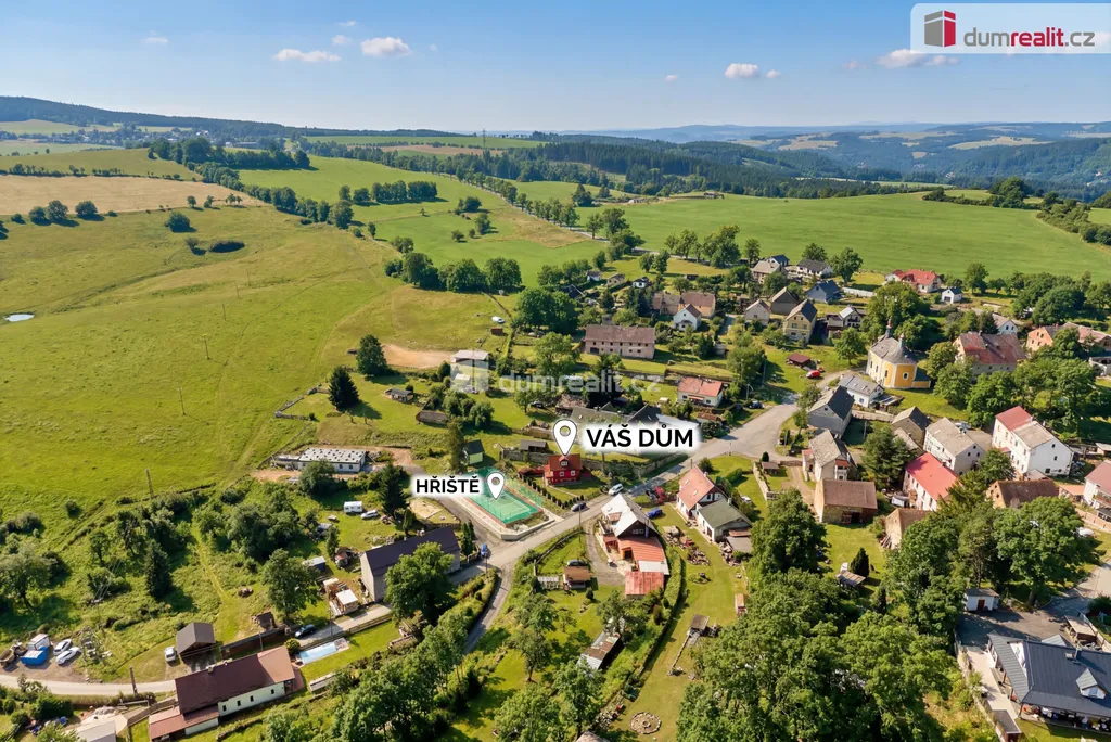 Zděný rodinný dům nabízí obytnou plochu 79 m² a poskytuje příjemné a praktické bydlení v klidném venkovském prostředí. Vytápění domu je řešeno kombinací kotle na dřevo a moderních elektrických dálkově ovládaných panelů, které zajišťují komfortní regulaci teploty. Ohřev vody zajišťuje elektrický bojler. Dům je napojen na obecní vodovod i kanalizaci. Přibližně před deseti lety prošla nemovitost významnou úpravou, při které bylo provedeno zateplení domu, nová fasáda a výměna původních oken za plastová, což přispívá k lepší energetické úspornosti a celkovému komfortu bydlení.