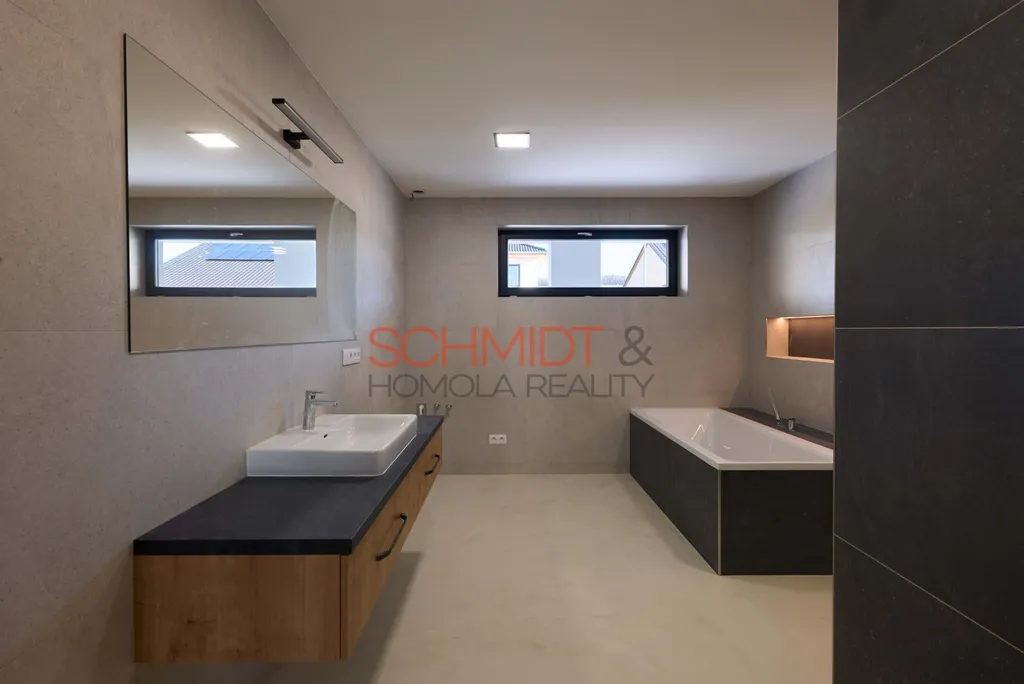 Jedná se o velice hezký bungalov s dispozicí 5kk, garáží, terasou a pozemkem o celkové výměře 748 m². Dům kolaudovaný v roce 2025 nabízí tři ložnice, pracovnu se samostatným vstupem, prostorný obývací pokoj s přípravou pro kuchyňskou linku, koupelnu ve které je k dispozici jak vana, tak bezvaničkový sprchový kout, dvě samostatné wc, technickou místnost a již zmíněnou garáž.