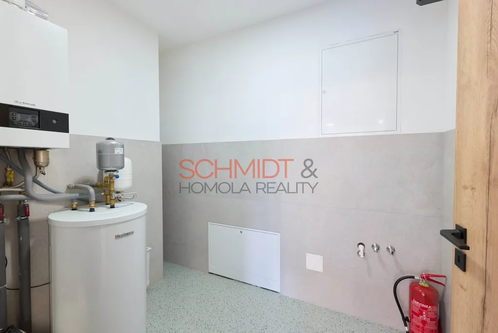 Nemovitost je připojena k veškerým inženýrským sítím. Dešťová voda je svedena do retenční nádrže (možnost přepnout na splachování wc) a dále do kanalizace.