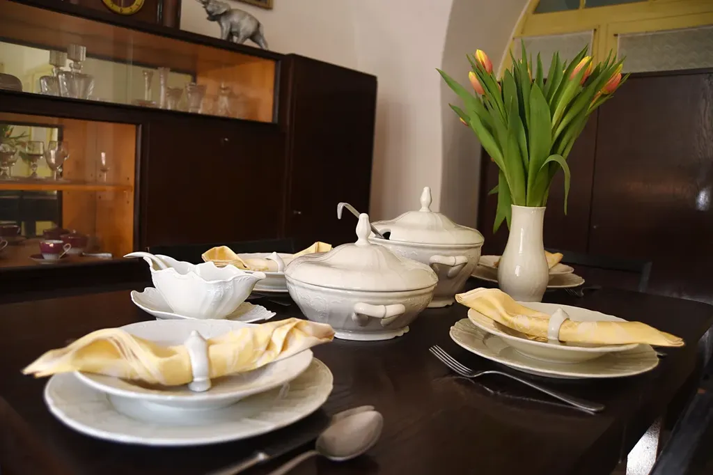 Za obchodem, v zadní části prvního nadzemního podlaží, s okny do Wernerova nábřeží a ulice Pod Sklípky, se dochoval byt majitele. Ve druhém patře je pak další, rozlehlejší byt, který obývala sestra majitele s rodinou. Tento byt má okna jak do Wernerova nábřeží, tak i do Kostelní ulice. Pro množství výklenků, chodeb a nepravoúhlost místností uvádíme přibližnou podlahovou plochu domu (přízemí a druhé patro) jako cca 300 m², samotný byt v druhém nadzemním podlaží má přibližně 150 m². Celý dům je podrobně zaměřen Společností pro rekonstrukci památek a výkresy jsou k nahlédnutí.