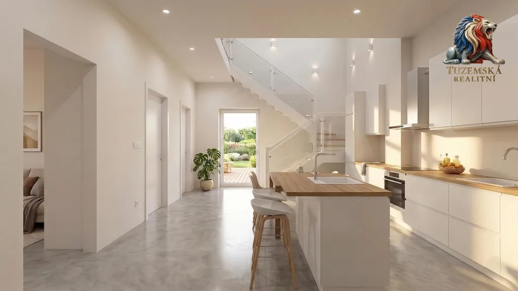 Konečně prostor, který si zařídíte podle sebe. Představte si tu radost z výběru vlastních podlah a obkladů. V přízemí na vás čeká velký prosvětlený obývák spojený s kuchyní (na kterou už máme připravený úžasný projekt i rozvody). V patře je klidová zóna s manželskou ložnicí s vlastní prostornou šatnou, další pokoj, druhá koupelna a odpočinková zóna pro večerní relax.