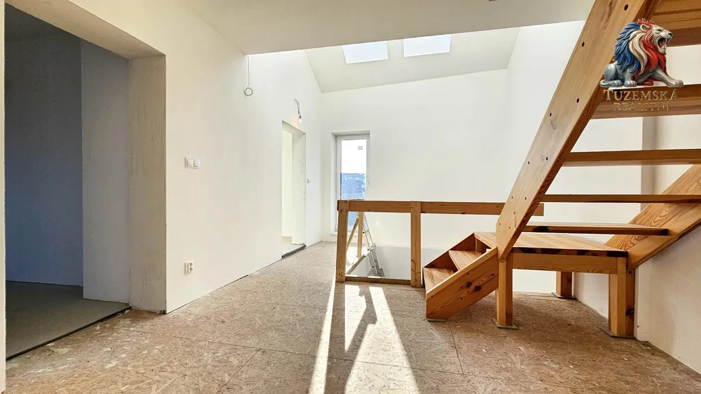 To pravé kouzlo se ukrývá úplně nahoře. Podkroví je obrovský open-space s novým dřevěným trámovým stropem, který zalévá sluncem neuvěřitelných 8 střešních oken. Ideální místo pro gigantickou hernu, ateliér, nebo prostor k rozdělení na dva samostatné pokoje.