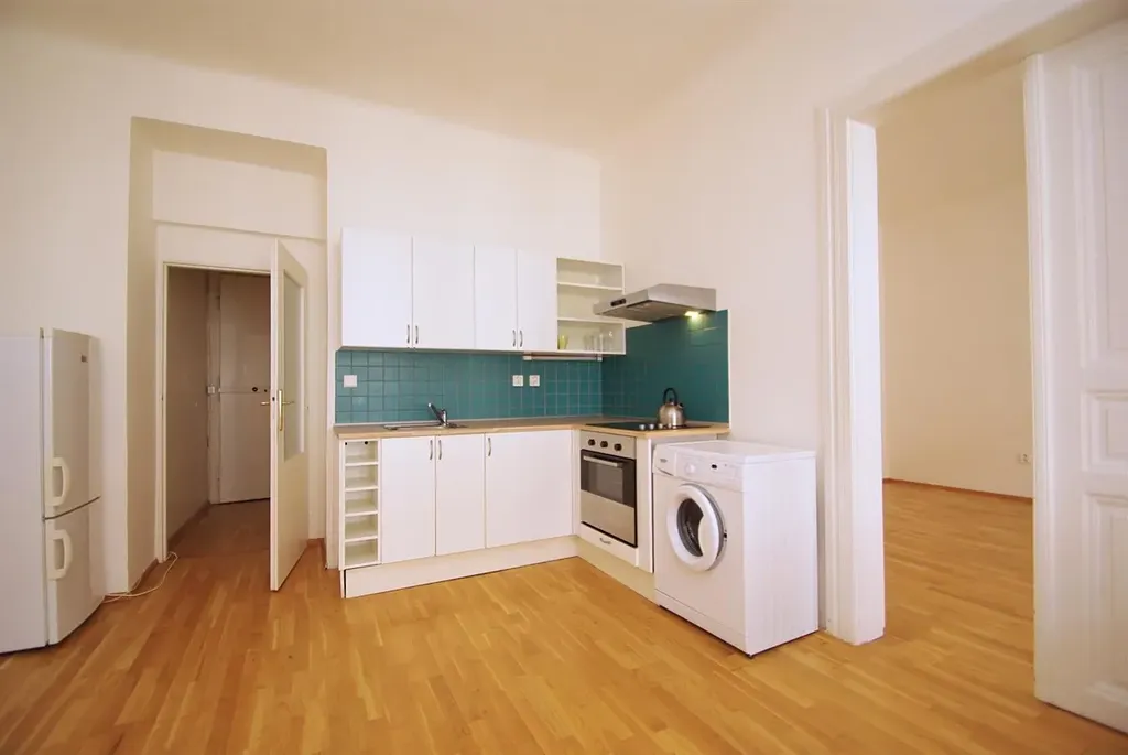Prostorný částečně zařízený byt 2+kk o výměře 46,3 m2 se nachází ve 2. patře v rezidenční budově s velkou zahradou ve vnitrobloku k užívání pro nájemníky, v atraktivní lokalitě nedaleko Náměstí Jiřího z Poděbrad, na Žižkově Praha 3, ulice Kubelíkova.