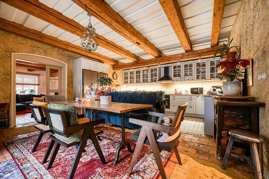 Zachované původní trámy, masivní dřevo, přirozené materiály, ruční detaily a světlo, které prostupuje každým koutem. Interiér je promyšlený do posledního detailu – propojuje historický charakter s komfortem moderního bydlení.