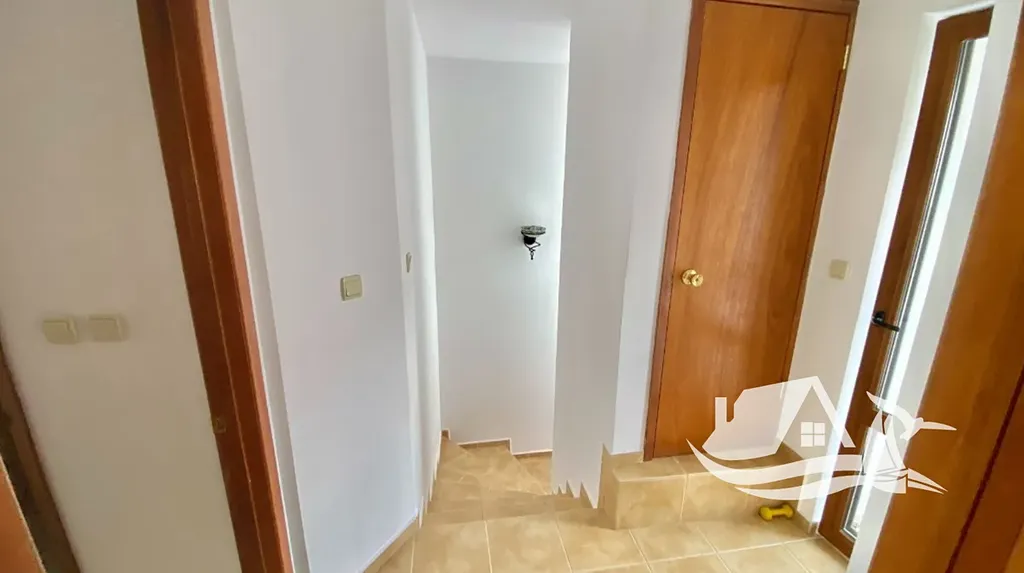 V horním patře se nachází chodba, dvě ložnice, každá s vlastní koupelnou a toaletou, komora a dvě terasy s výhledem do upraveného areálu. Okna domu jsou orientována na jih, takže interiér je po celý den zalitý přirozeným světlem.