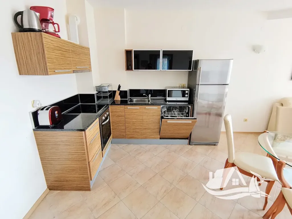 Nabízíme prostorný byt se dvěmi ložnicemi ve třetím patře v uzavřeném komplexu, který se nachází v malebné oblasti "Čaika" v klidného přímořského města Byala, 450 metrů od písečné pláže a přístavu, a restaurace "Čaika" s krásným výhledem na moře a zátok. Byt se skládá z prostorného obývacího pokoje s kuchyní a jídelním koutem ve společném prostoru, hlavní ložnice s vlastní koupelnou s toaletou, druhá ložnice, druhá koupelna s toaletou a prostorné terasy s výhledem na moře a upravené území komplexu. K bytu náleží sklep. Má velkou plochu, vhodný na pohodlné dovolené i pro velkou rodinu. Užitná plocha (včetně sklepa o ploše 6 m2) je 101 m2, celková plocha je 120 m2. Byt je dobře zařízený a vybavený a cena je včetně nábytku a vybavení dle fotografií. Oplocený areál komplexu má následující vybavení: 2 bazény, rekreační oblast s lehátky a slunečníky, restaurace, parkoviště, minimarket, posilovna, masážní místnost, dětské hřiště a spousta zeleně. Roční poplatek za údržbu je 15.50 €/m2.