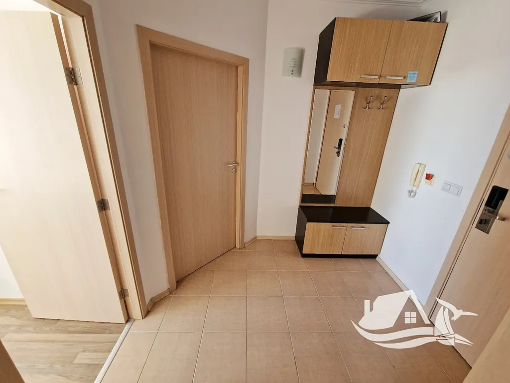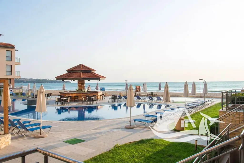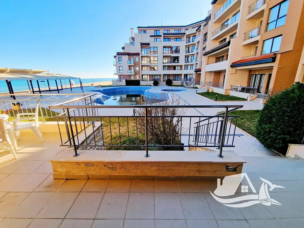 Nabízíme ke koupi nádherný dvoupokojový apartmán o celkové ploše 68 m², který se nachází ve vyvýšeném přízemí prestižního komplexu na první linii u moře ve městě Obzor. Tento apartmán má praktické a funkční uspořádání, které nezahrnuje žádné průchozí místnosti. Skládá se ze vstupní chodby, prostorného obývacího pokoje s kuchyňským koutem a jídelním prostorem, samostatné ložnice, koupelny s toaletou a velké terasy. Terasa je přístupná z obou místností a umožňuje přímý vstup k bazénu a na pláž. Z apartmánu se nabízí jedinečný výhled na moře i na bazén, což z něj činí ideální místo pro odpočinek a relaxaci.