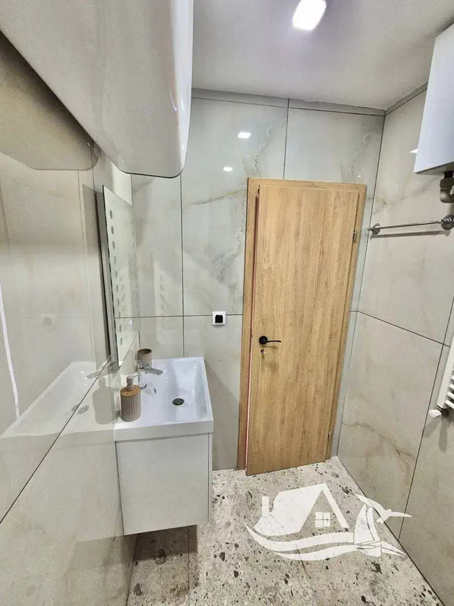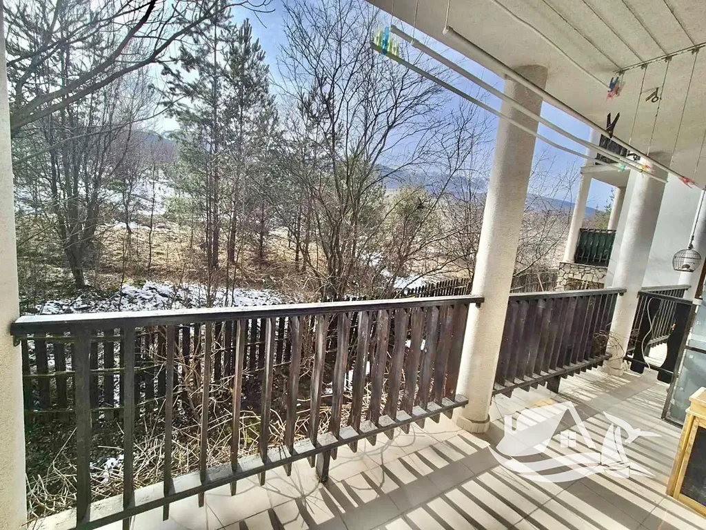 Apartmán nabízí příjemný a praktický prostor pro každodenní život i víkendový odpočinek. Velký obývací pokoj s kuchyňským koutem vytváří otevřený a světlý prostor, který přirozeně navazuje na jižní terasu. Výhled na Vitošu dodává interiéru pocit prostoru a klidu. Je zde také prostorná ložnice a koupelna.