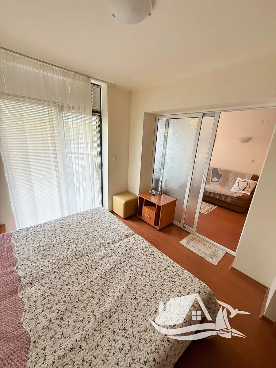 Apartmán je umístěn ve třetím podlaží a nabízí prakticky řešený prostor o celkové ploše 46 - m². Interiér působí svěže a funkčně. Obývací pokoj s kuchyňským koutem tvoří příjemné centrum bytu, kde se odehrává každodenní život i chvíle odpočinku. Samostatná ložnice poskytuje klid a soukromí. Balkon orientovaný do areálu komplexu je ideálním místem pro ranní kávu nebo večerní relax po dni stráveném u moře.