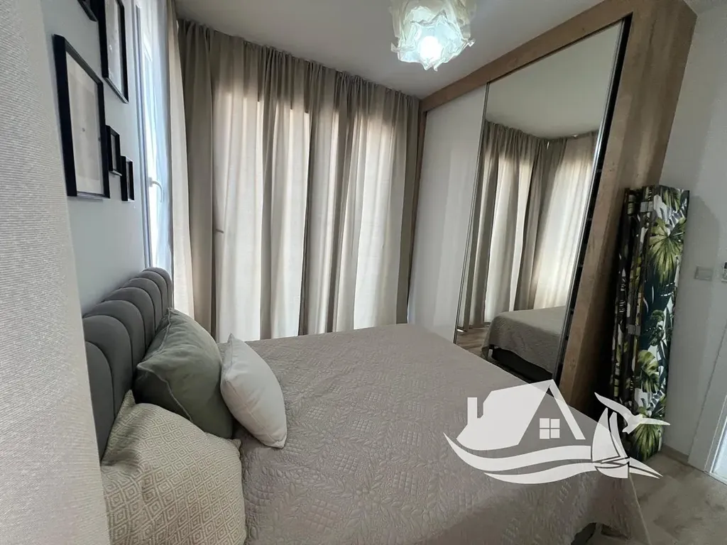 Apartmán nabízí světlý obývací pokoj s plně vybavenou kuchyní, dvě pohodlné ložnice s vestavěnými skříněmi, moderní koupelnu a soukromý balkon. Vrcholem této nemovitosti je velká soukromá střešní terasa, ideální pro opalování, venkovní stolování, zábavu s hosty nebo prostě jen pro kochání se úchvatným výhledem na moře, hory a okolní přírodu.