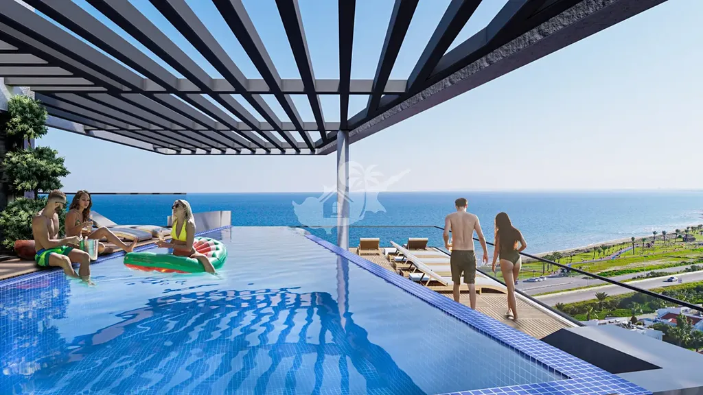Moderní apartmán 3+kk s balkonem a krásným výhledem na moře a bazén. Nachází se jen pár kroků od pláže, nabízí soukromou pláž, venkovní bazén, fitness, sky bar a barbecue zónu.