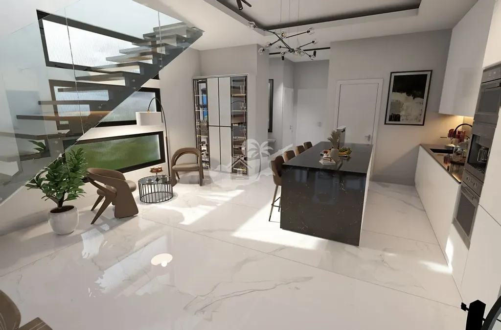 K dispozici je garáž a prostorná místnost v suterénu poskytují přirozené světlo a větrání díky orientaci k vnitřní soukromé cestě a snížené zahradě. Obytné prostory v přízemí se otevírají do krásné zahrady s bazénem, zatímco 3 ložnice s vlastní koupelnou v prvním patře nabízejí výhled na moře a hory ze všech úhlů. Každá vila má svůj vlastní bazén.