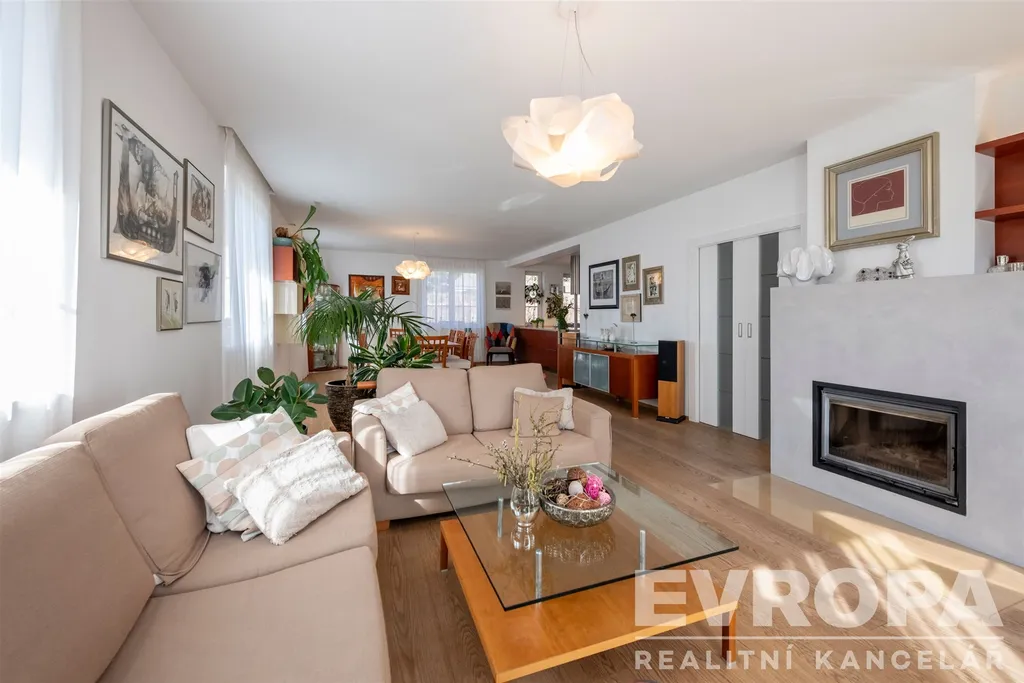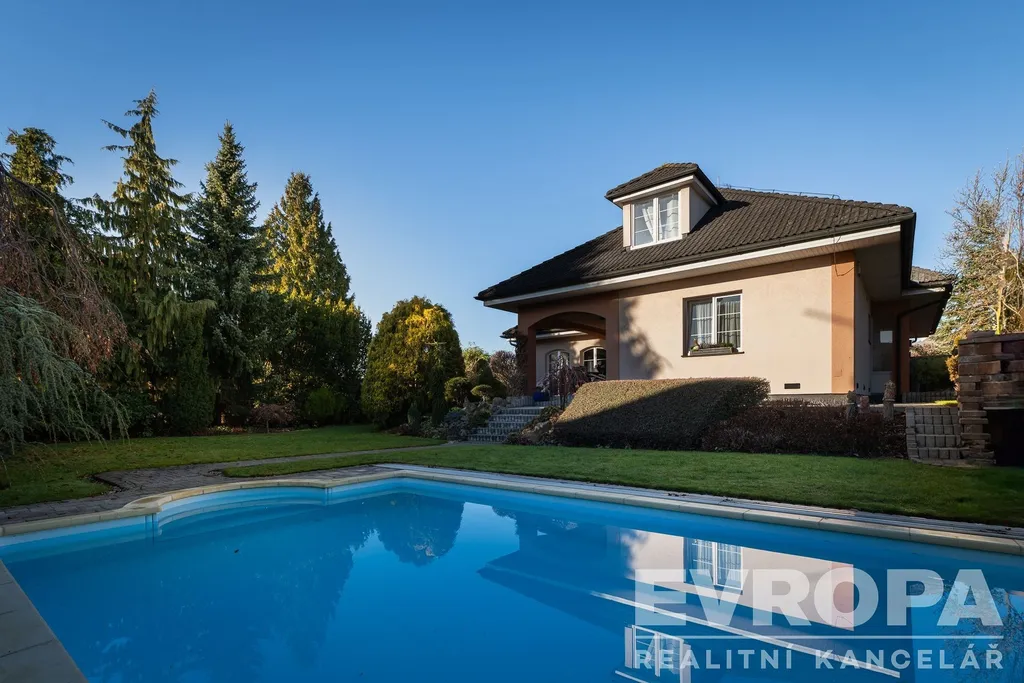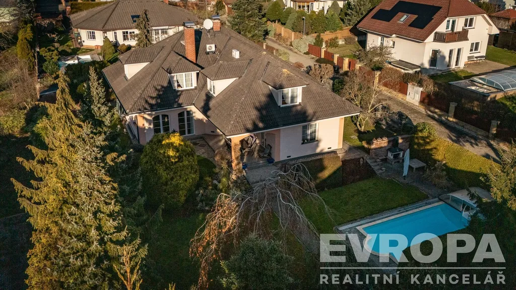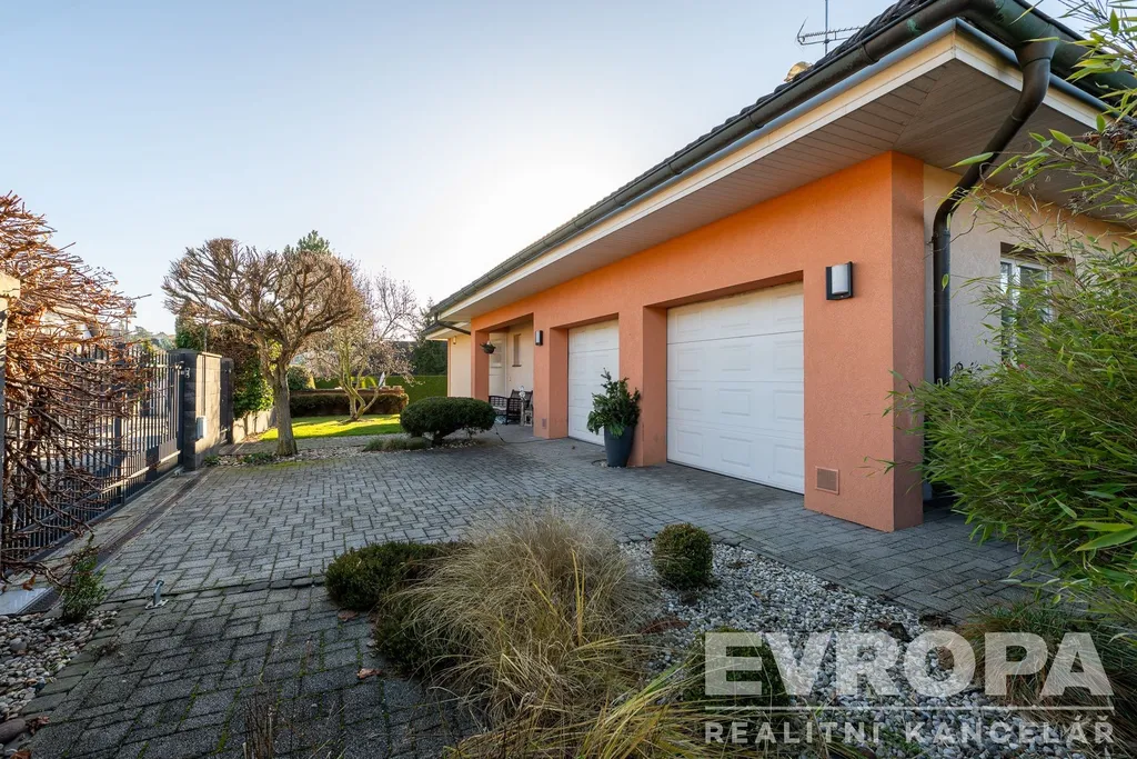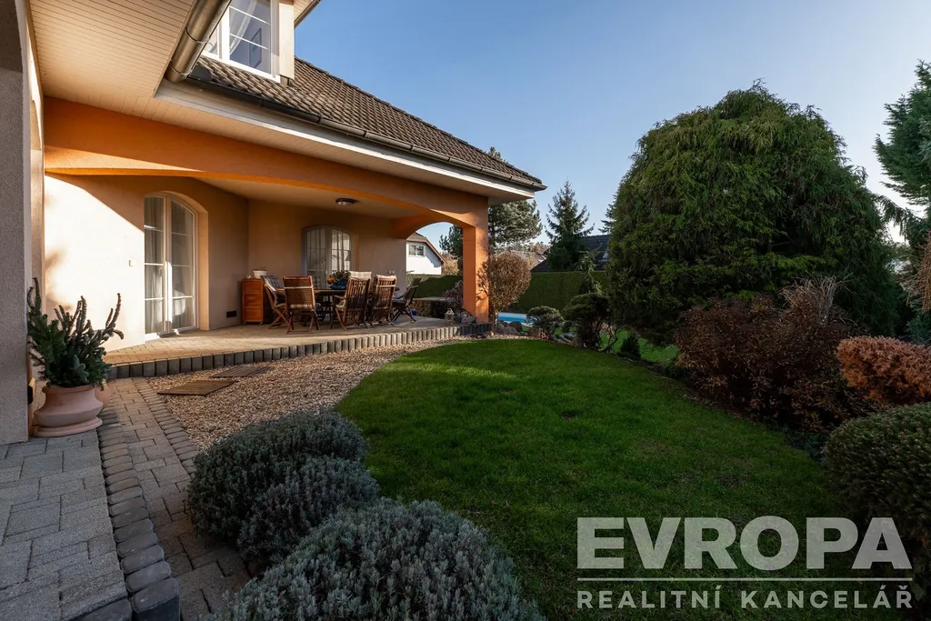 Tento reprezentativní dům 6+kk s užitnou plochou 363 m², dvojgaráží a překrásnou zahradou o rozloze 972 m² vás nadchne na první pohled.