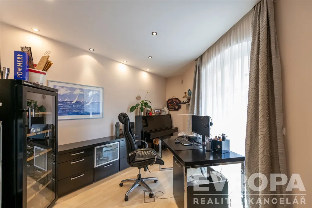 Patro: tři pokoje (jeden velmi prostorný), šatna, samostatné WC a velká koupelna s vanou a prostorem pro domácí fitness.