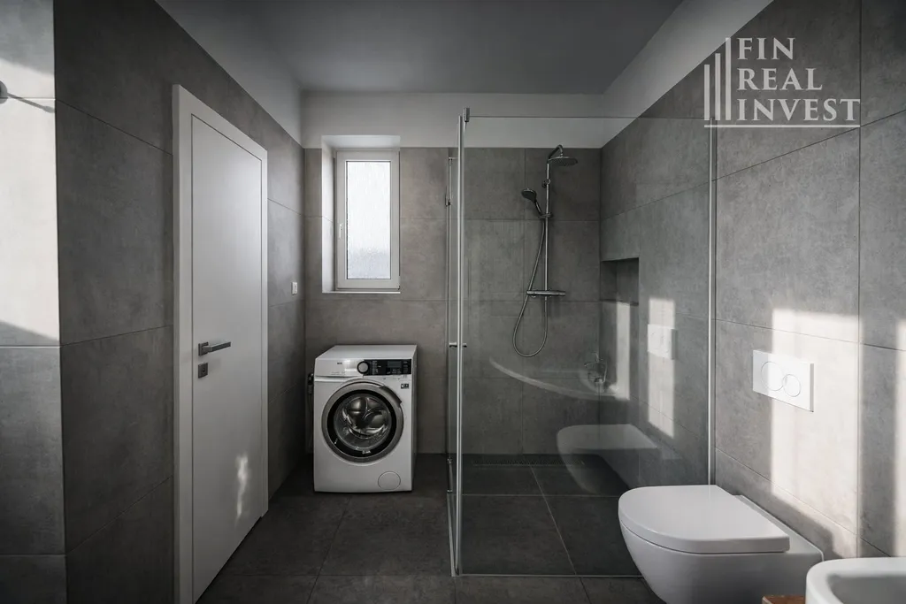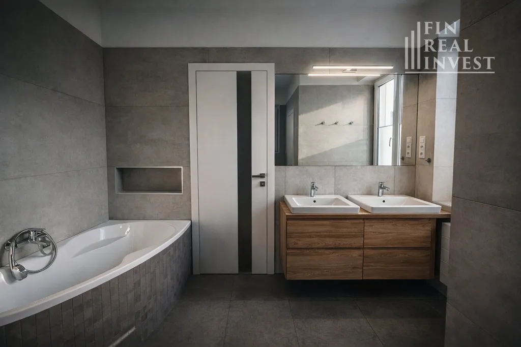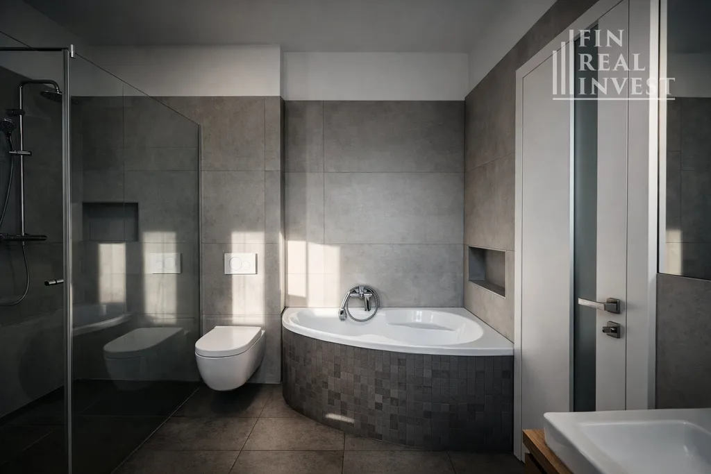 Velkou předností bytu je nadstandardně řešená koupelna:
