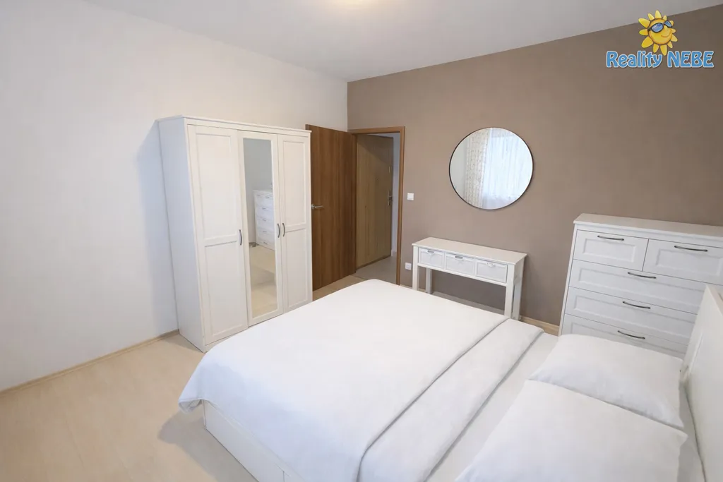 Byt se skládá ze samostatné ložnice, obývacího pokoje s kuchyňským koutem odkud je vstup na balkon, dále koupelna se sprchou a WC. V bytě také komora. Je možno pronajmout jako prázdný, nebo dle dohody také možno odkoupit nábytek a vybavení od současného nájemce.