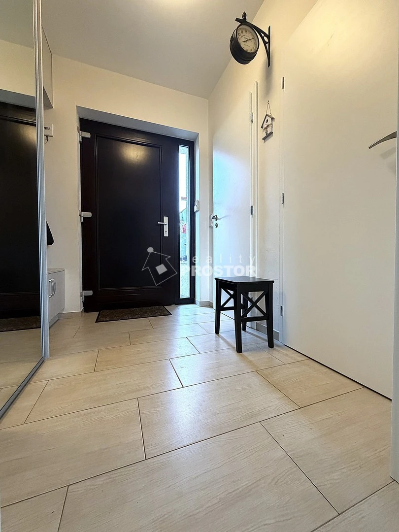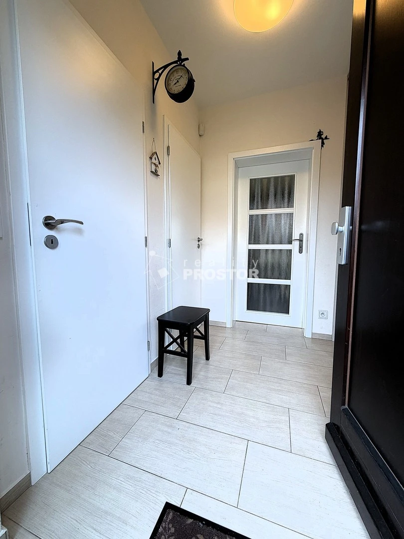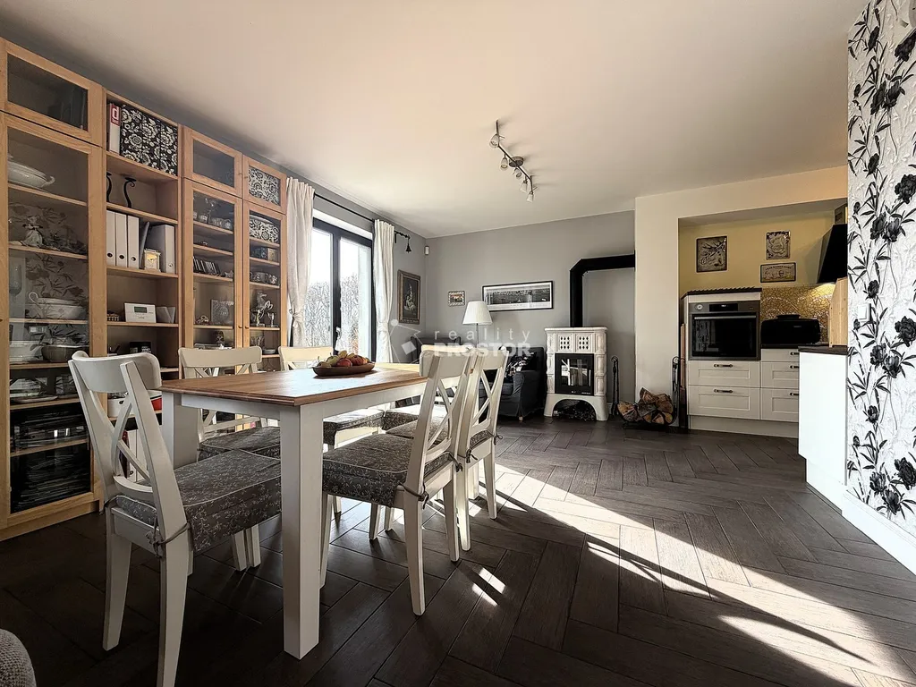 Dispozice domu je řešena jako světlé a praktické rodinné bydlení. V přízemí se nachází prostorný obývací pokoj propojený s jídelnou a kuchyní o velikosti 37,8 m², který tvoří hlavní obytný prostor domu s krbovými kamny které v zimních měsících vytváření příjemnou atmosféru a rychlé teplo. Dále je zde vstupní hala, komora, samostatné WC a schodiště vedoucí do patra. V horním podlaží jsou tři samostatné pokoje o velikostech 14,9 m², 12,5 m² a 8,6 m², chodba a koupelna s WC. Praktickým bonusem je půdní prostor o velikosti 19,2 m², který nabízí další úložné možnosti. Přímo před domem pohodlné parkování na vlastním pozemku pro 2 auta.