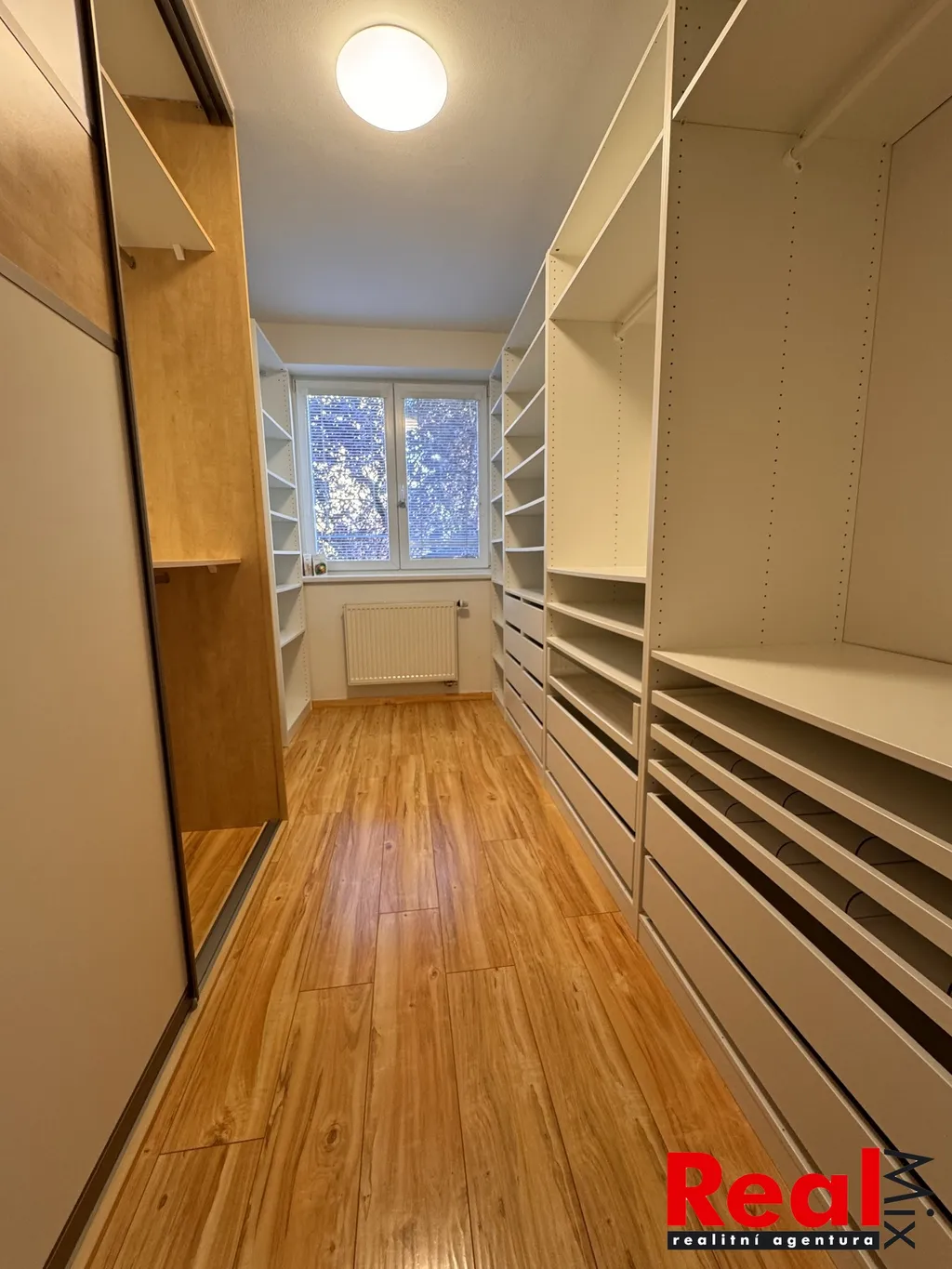 Nabízíme k pronájmu exkluzivní novostavbu cihlového bytu 4+KK s balkonem, sklepem 5m2 a velkou garáží přímo v domě s výměrou 24m2 na ul. Jundrovská, Brno - Komín. Byt se nachází ve 2. NP/4 novostavby menšího bytového domu, CP bytu je 98m2. Byt prošel před nedávnem celkovou rekonstrukcí koupelny, WC, kuchyně, podlah atp. a je nově vymalován. Byt je nabízen kompletně vybavený veškerým nábytkem i spotřebiči viz přiložená fotodokumentace, vč. například pračky, sušičky, kuchyně vč. veškerých vestavěných spotřebičů, velkého množství vestavěných skříní a dalších úložných prostor, sedačky, v případě zájmu vybavení dětského pokoje atd. Dispozice bytu: vstupní chodba 13,3m2, ložnice 13,3 a 14m2, pracovna (aktuálně využíváno jako šatna) 8,8m2, obývací pokoj + kuchyně 37m2, koupelna 5,4m2 s vanou a WC, samostatné WC 1,2m2, sklep v přízemí bytového domu 5m2, garáž 24m2. Vytápění bytu a ohřev vody je zajištěno vlastním kombinovaným kotlem. Jedná se o velmi pěkné bydlení ve vysokém standardu v žádané lokalitě v blízkosti centra města i pěkné přírody (nedaleko Obora Holedná, Medlánecké letiště, Brněnská přehrada atd.). U domu zastávky MHD i kompletní občanská vybavenost. Majitel požaduje vratnou kauci ve výši min. 50 tis. Kč + provize RK. Volné od 1.5.2026, případně dle dohody. Více info a prohlídky v RK.