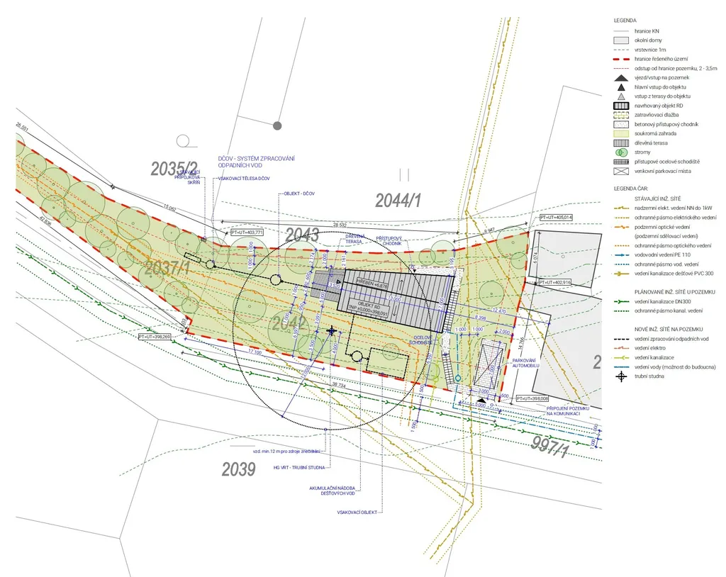 Na pozemek o velikosti 807 m² je zpracována architektonická studie a dokumentace pro RD a zároveň je