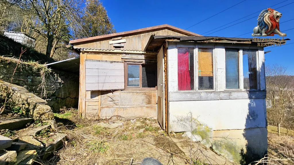 Stávající chata z dřevotřísky má své nejlepší roky již za sebou. Její betonový základ s malým sklípkem čeká až na něj umístíte zbrusu novou, moderní, přesně podle Vašich snů.