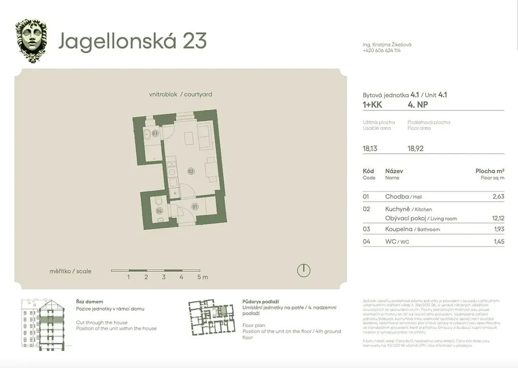 Nabízíme k prodeji stylovou bytovou jednotku o dispozici 1+kk a výměře 18,6 m², která je součástí rezidenčního projektu Jagellonská 23 – citlivě rekonstruovaného činžovního domu na rozhraní Vinohrad a Žižkova, jedné z nejvyhledávanějších částí širšího centra Prahy.