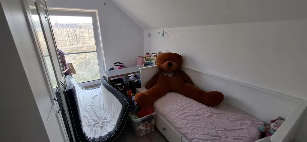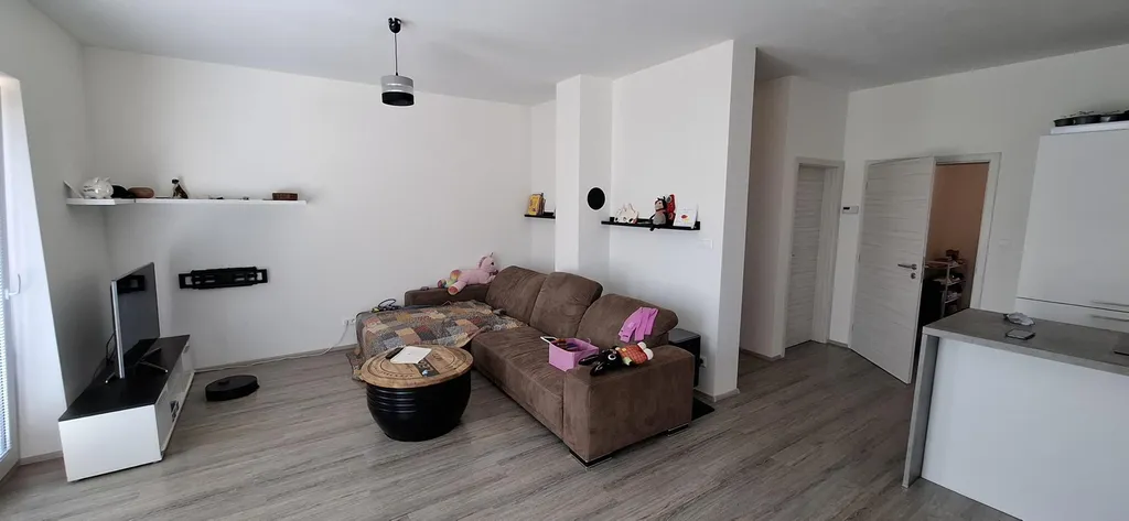 1.patro: hala, samostatné vstupy do tří pokojů, koupelna s vanou a WC, šatna. Teplovodní podlahové topení, elektrický kotel se zásobníkem na ohřev vody, plastová okna trojsklo, na podlaze dlažba a lepená vinylová podlaha, kuchyňská linka včetně spotřebičů. V obci veškerá občanská vybavenost. Volný od 1.6-2026.