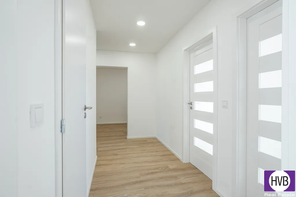Dispozice: velmi prostorná vstupní chodba, obývací pokoj s plně vybavenou kuchyňskou linkou, tři obytné místnosti, koupelna a sprchový kout. Oddělené místo pro pračku a samostatné WC. Bydlení je navrženo s ohledem na moderní životní styl, vybaveno kvalitními materiály a promyšlenými detaily. Součástí bytu je také prostorná lodžie a sklep.