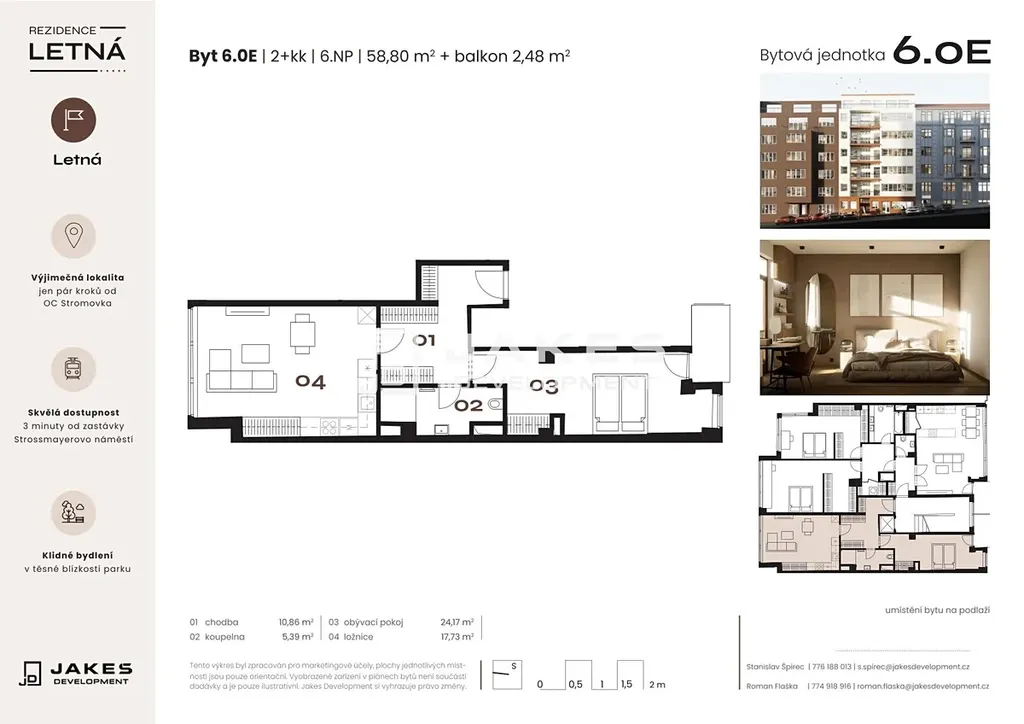 Nabízíme ke koupi byt 2+kk o ploše 58,80 m² s balkonem 2,5 m umístěný v 6. nadzemním podlaží historického činžovního domu s výtahem.
