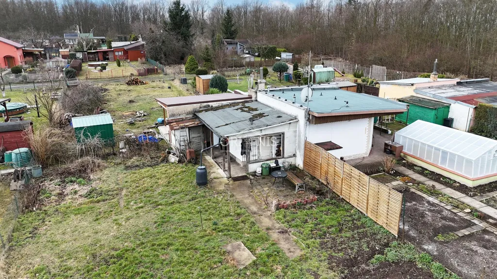 Na pozemku se nachází chata o velikosti 27 m and sup2;, která je celá podsklepená a poskytuje příjemné zázemí pro rekreaci, víkendové pobyty i odpočinek mimo ruch města. Součástí chaty je také splachovací WC. Díky dispozici a zázemí nabízí chata možnost úpravy pro celoroční užívání.