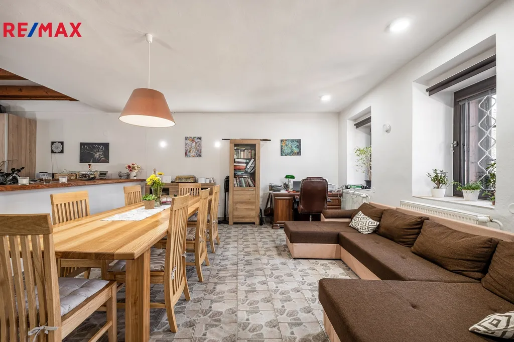 Po vstupu do domu se nachází zádveří, které vede do velké společenské místnosti s barem – ideální prostor pro snídaně, večerní posezení hostů nebo menší společenské akce.