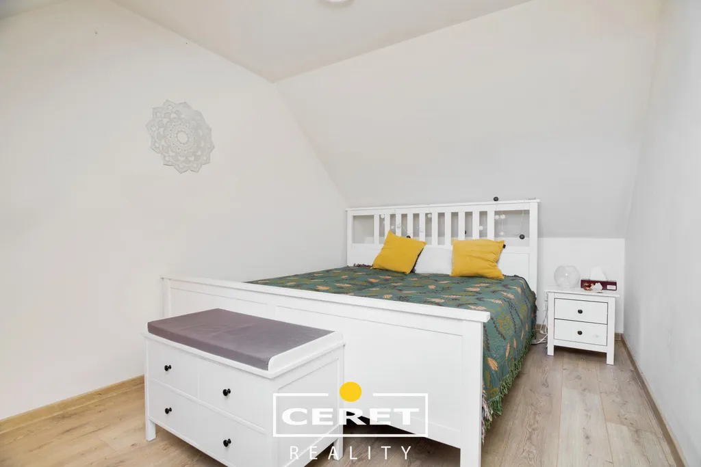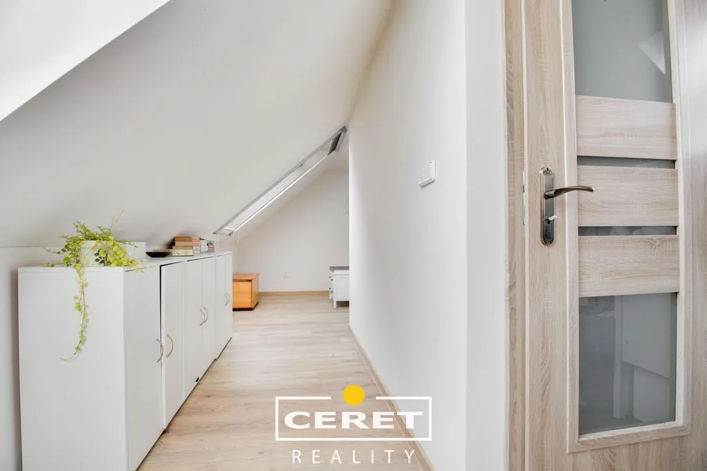 Stav po rekonstrukci: nová střešní krytina, plastová okna, vkusné laminátové podlahy, moderní koupelna