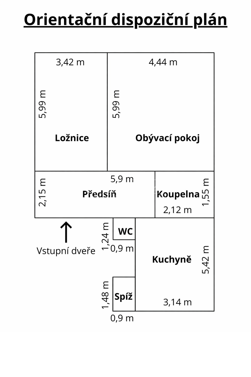 Orientační velikost místností: