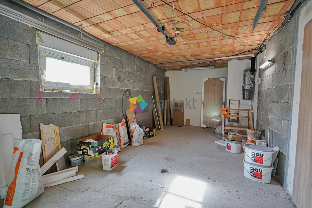 Aktuální stav a dokončení: Dům se prodává ve stavu rozestavěné stavby tak, jak je detailně zachyceno na fotografiích a v přiložených půdorysech. Budoucí majitel si tak sám podle svého vkusu a rozpočtu zajistí finální povrchy (výmalbu, podlahové krytiny), sanitu, interiérové dveře, kuchyňskou linku, venkovní úpravy soklu a finální zdroj vytápění.