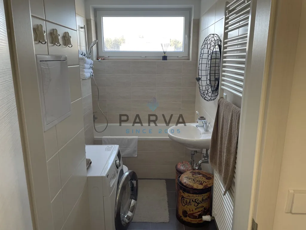 Byt zaujme příjemnou atmosférou, praktickou dispozicí a dostatkem prostoru pro pohodlné každodenní bydlení. Velkým benefitem je vlastní parkovací stání. Součástí bytu je moderní, plně vybavená kuchyňská linka s vestavěnými spotřebiči - lednička, myčka, indukční deska.
