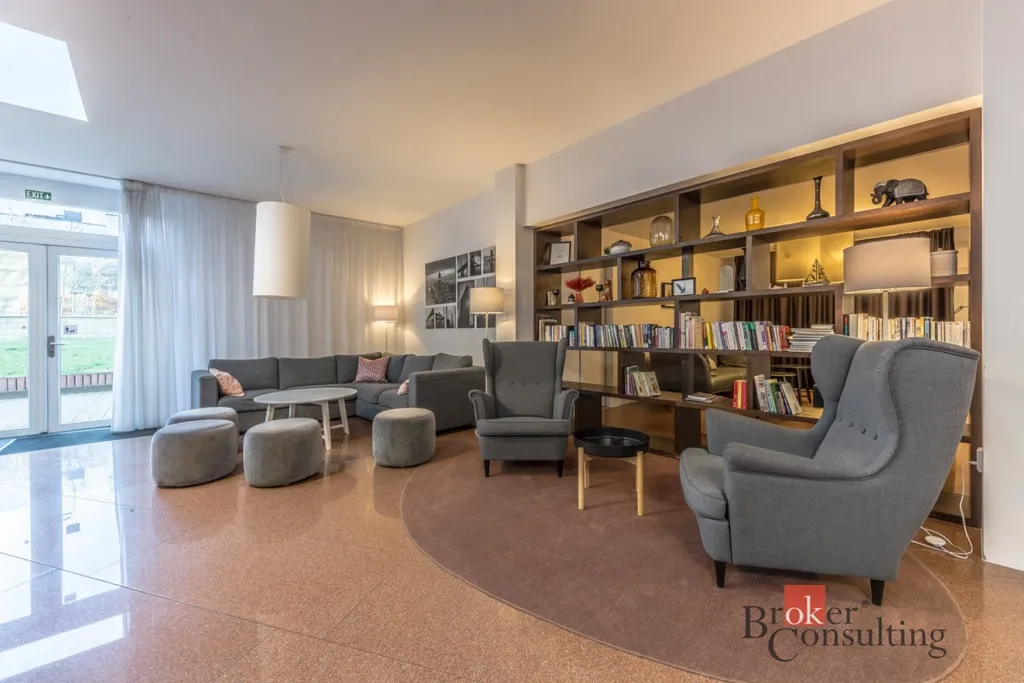 V objektu se nachází a je plně k využití pro vlastníka či nájemníka bytu: dvě fitness, tři prádelny včetně sušiček, recepce 24/7 s lobby místí, několik relaxačních zón, čtecí koutek, TV koutek či místnost s krbem. Dále je zde uzavřená zahrada s posezením a venkovními grily. Díky tomu se jedná o atraktivní projekt, hotelového typu v příjemném prostředím.