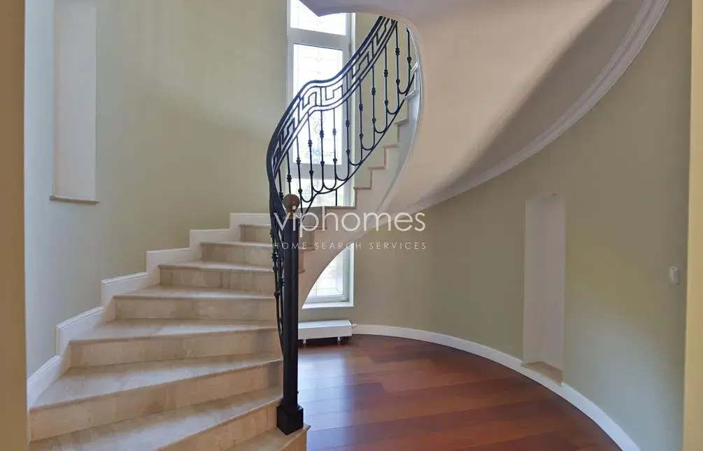 Dřevěné podlahy z tropického dřeva, vysoce kvalitní francouzská okna, domácí videotelefon, vytápěné mramorové podlahy v koupelnách, alarm. Ve velké míře je zde využito spojení luxusních a moderních materiálů v interiérech, přírodní kámen na fasádě, mramor v koupelnách a na centrálním schodišti, prvku exotického dřeva na terasách.