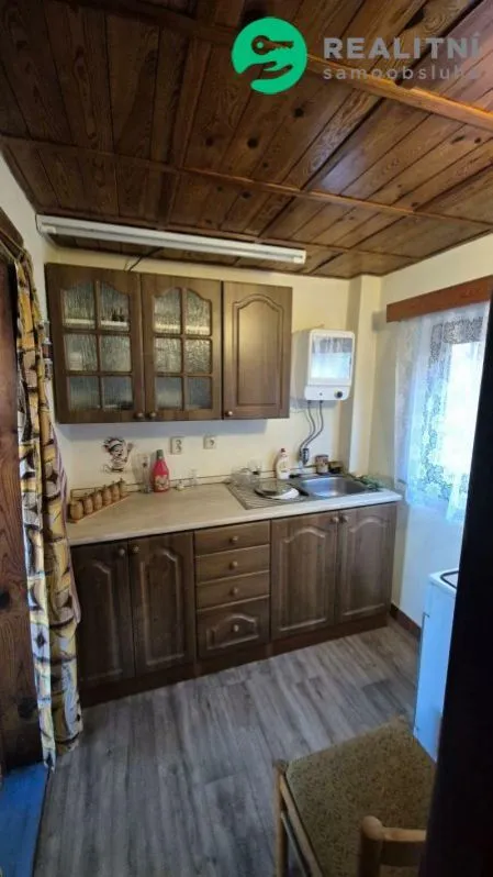 má prostornou verandu, kuchyňku s kombi sporákem a splachovací WC.