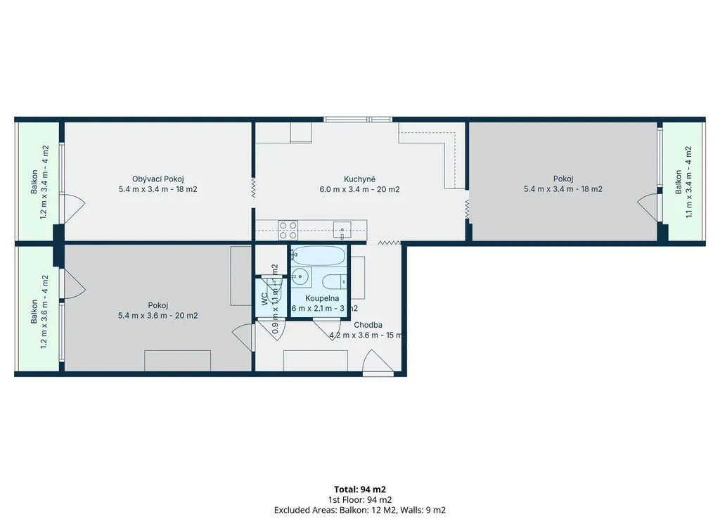 Kuchyň, průchozí do dvou pokojů s lodžiemi, samostatný pokoj se vstupem z chodby, ideální jako ložnice, pracovna či dětský pokoj.
