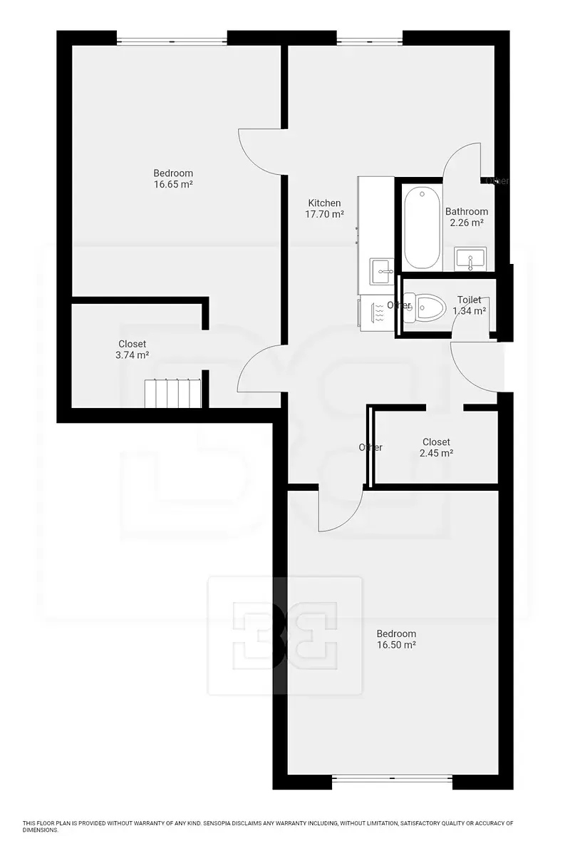 Byt má praktické dispoziční řešení. Dispozice nabízí dvě samostatné ložnice, přičemž z jedné z nich je přímý vstup do šatny a nachází se hned vedle kuchyně. Za kuchyní je situována koupelna. Toaleta je umístěna samostatně.