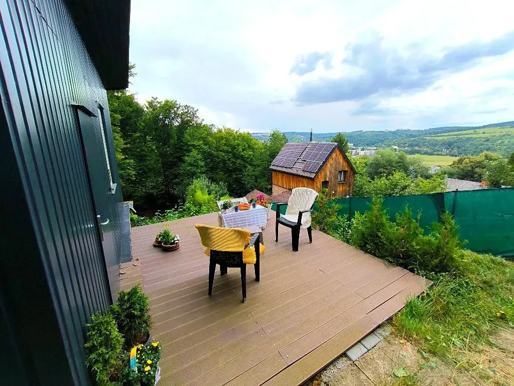 Prodej chaty, montovaného domku s terasou, která je uložená nad původním sklepem v chatové oblasti Nad Pramenem, Zlín Příluky.