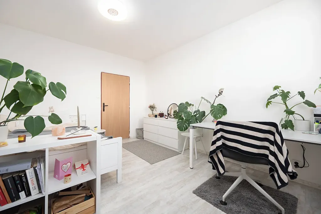 Byt je v udržovaném stavu, má plastová okna. Byl v roce 2019 rekonstruován, koupelna, podlahy, kuchyňská linka a od té doby je byt pronajímán studentům, nájemní smlouva končí 30.6.2026, volný od 7/2026. Možnost nájem studentům prodloužit o další období.