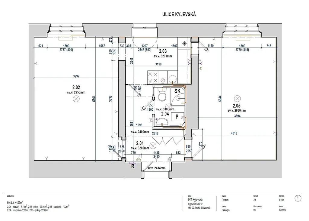 Byt ve 2. nadzemním podlaží cihlového domu má velké samostatné pokoje a ve svém středu má vstupní halu, kuchyň a koupelnu s wc. Jako investice je ihned připravený (nyní je pronajímán). Byt lze snadno upravit k příjemnému bydlení, rekonstrukce podlahy v bytě byla provedena, i současný stav je na okamžité příjemné bydlení, ale lze přestavět na nádherný byt!