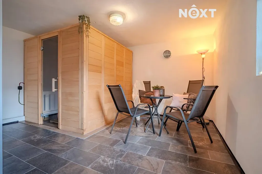 Součástí nemovitosti je také samostatně stojící garáž, ve které se nachází sauna a vlastní koupelna, což vytváří příjemný prostor pro relaxaci.
