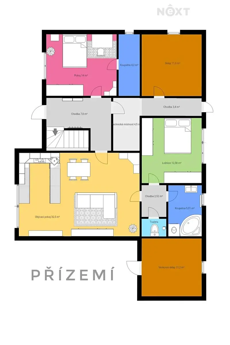 Dům nabízí dostatek prostoru, soukromí i možnosti využití – ať už pro vícegenerační bydlení, podnikání z domova nebo investici.