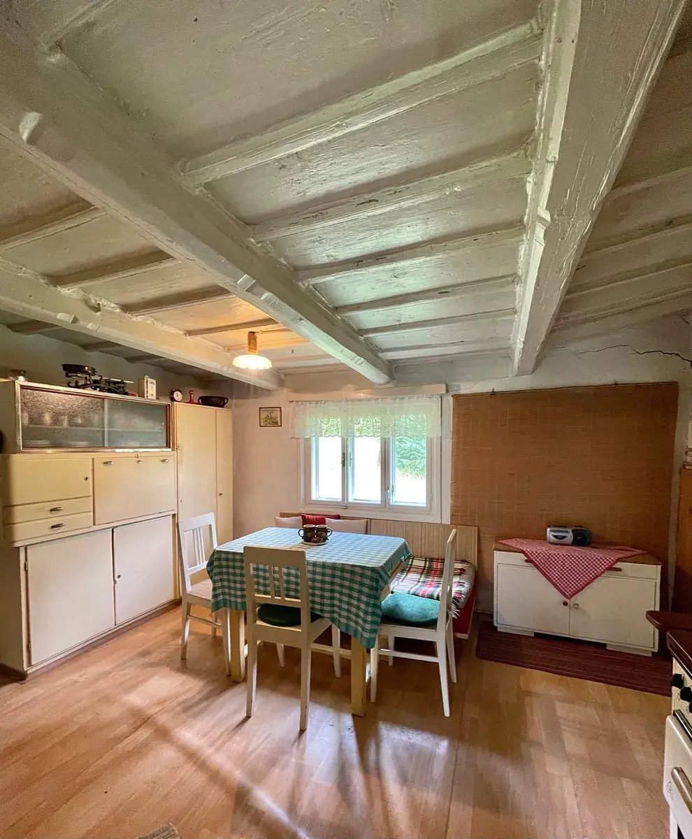 Tato chalupa si zachovala autentický venkovský charakter – původní trámové stropy, dřevěné prvky a prostornou stodolu. Místo má silný genius loci a nabízí klid, který dnes jen těžko najdete.