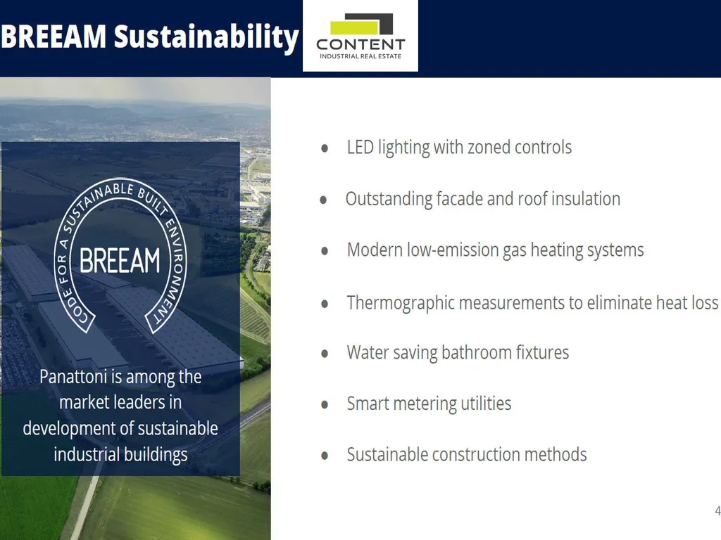 - moderní, úsporná budova s certifikátem udržitelnosti BREEAM