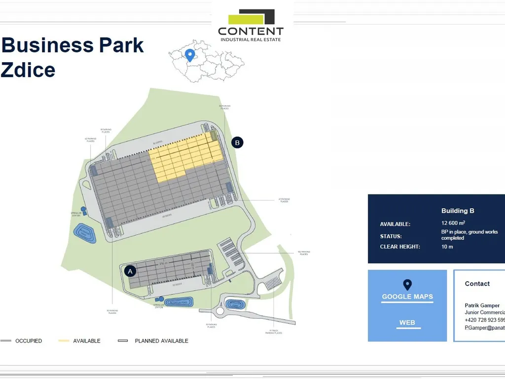 - nové skladové nebo výrobní prostory s možností dělení cca 5000 - 12600 m²,
