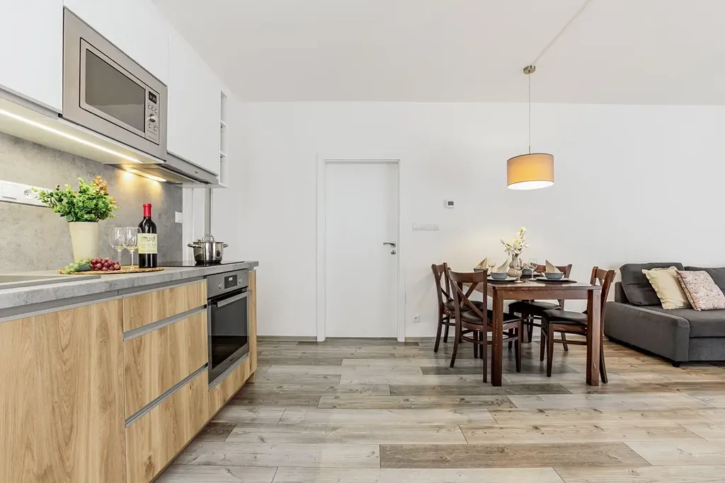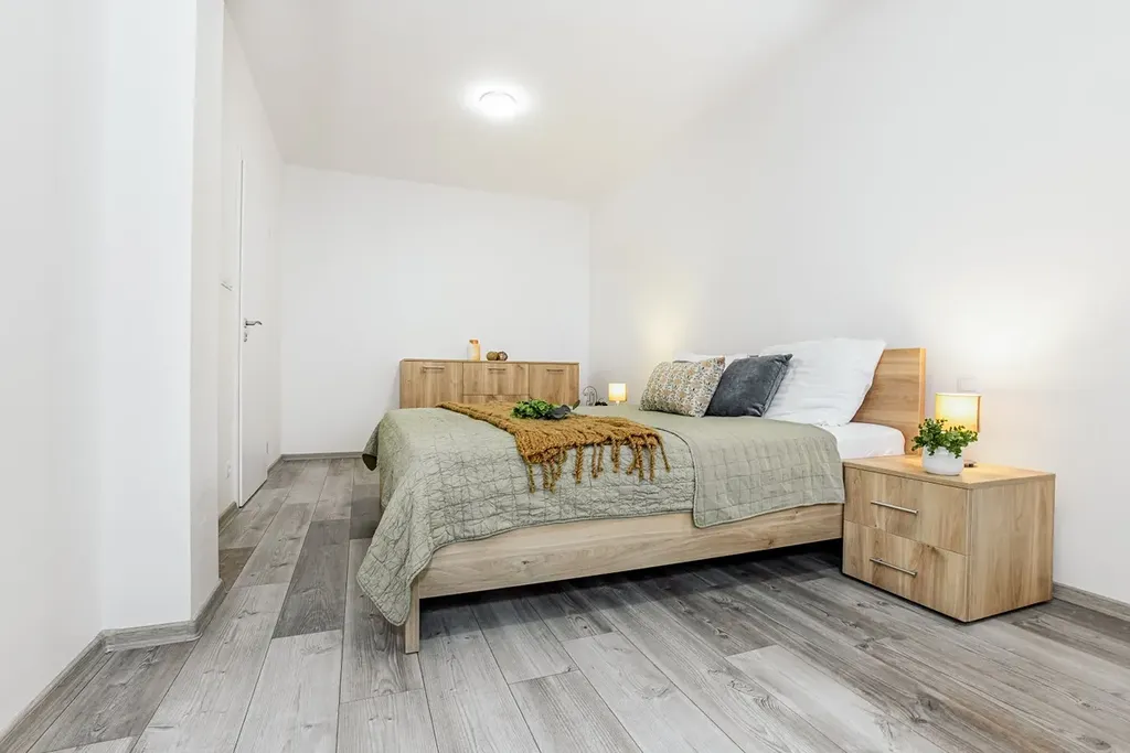 Tak pokud jste do teď nevybrali ten správný 2+kk apartmán v Lipně nad Vltavou, tak pro Vás konečně máme řešení bez kompromisů. V rezortu Korzo Lipno na Vás čeká kompletně vybavený apartmán 2+kk s krásným rohovým balkonem (16 m2) s jihozápadní orientací. Najdete ho v přízemí novostavby z r. 2020 a je připraven k okamžitému využívání. Díky umístění budovy ve svahu ale ani nepoznáte že jste v přízemí. Nabízí velmi prostornou předsíň stejně jako koupelnu s podlahovým vytápěním a sprchovým koutem. Obývací pokoj s kompletně vybavenou kuchyní a vstupem na již zmiňovaný rohový balkon a opravdu velkou ložnici s manželkou postelí a dalším lůžkem, takže se zde pohodlně ubytuje i velká rodina (3 děti) díky rozkládacímu gauči. Plastová okna, vinyl, tepelné čerpadlo + plynový kotel, prostorná sklepní koje (2,5 m2), bezproblémové parkování přímo před vchodem, recepce - to je jen pár detailů, které patří do standardu tohoto rezortu. Nízké měsíční náklady do 5.000,- Kč. Velmi dobrá poloha rezortu zaručuje dostatečný klid a současně velmi dobrou dostupnost jak k vodě (cca 300 m) tak i na sjezdovku (skibus 20 m od domu). A pokud byste nechtěli apartmán pořizovat pouze pro sebe, nabízí Korzo Lipno velmi zajímavý program správy nemovitosti, díky které si na sebe apartmán hezky vydělá a ještě zbyde dostatek času na ubytování pro Vás. Takže se doražte přesvědčit na vlastní oči.